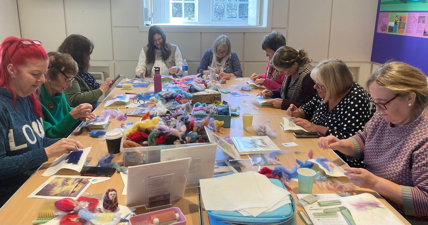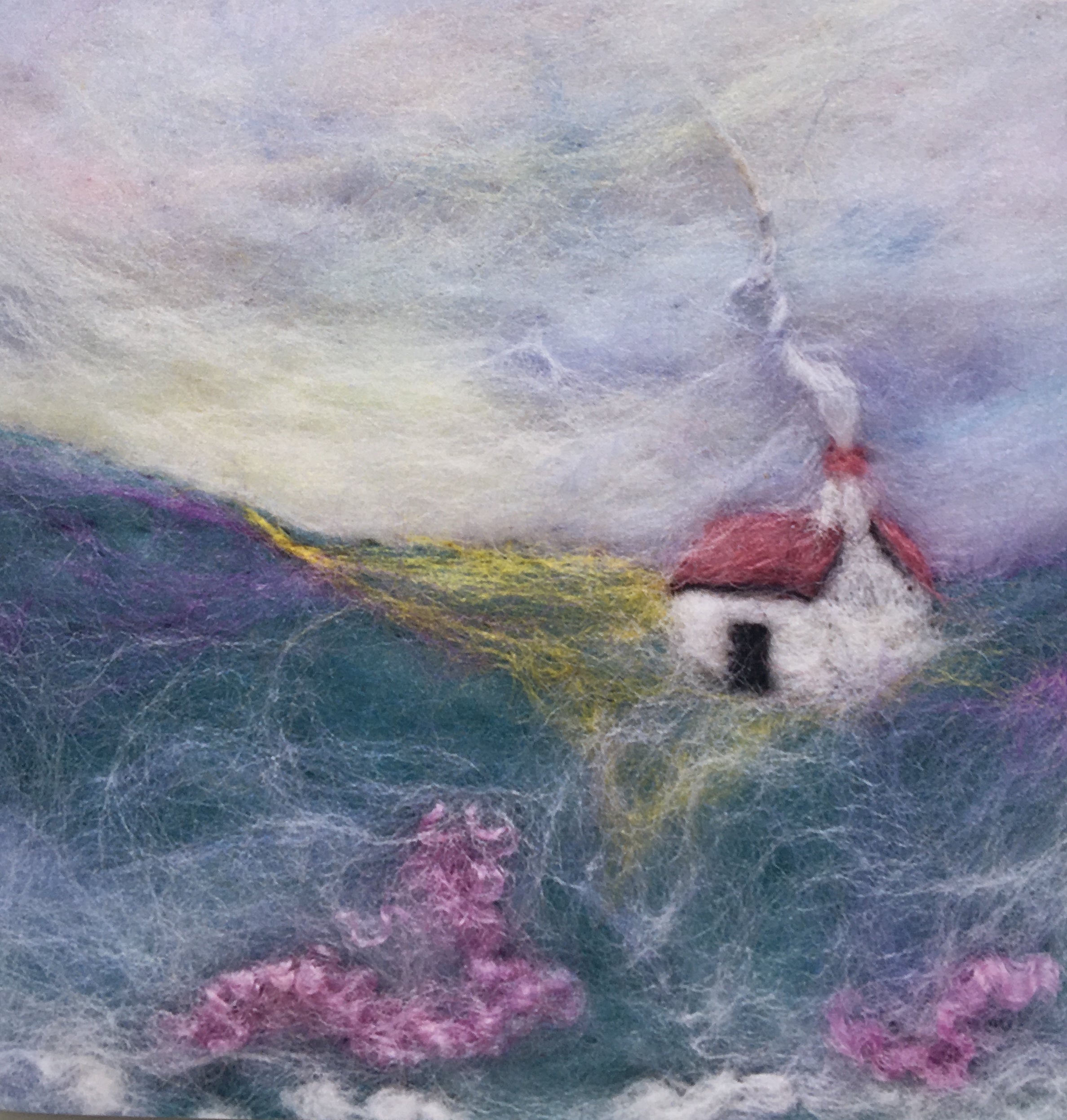 Lin-Pin creates colourful and wistful needle felt landscapes, seascapes and characters by needle felting in 2D and 3D. In using the finest soft merino roving wools, speciality fibres and blends, including tussah and sari silk. The felt works are soft, colourful and unique. Adding to the blends this year are LinPin Highlands, Hebridean Sea and Sunset customised wool and silk blends.