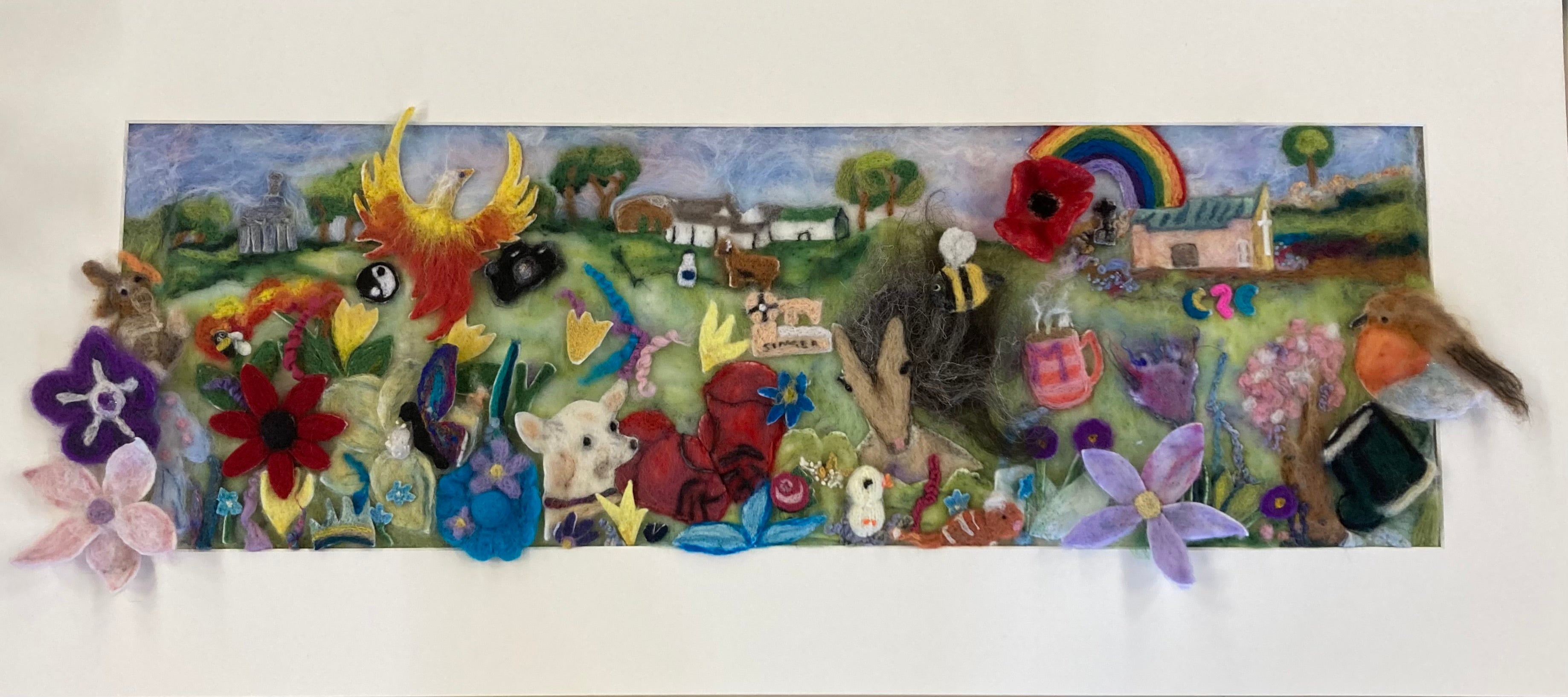 Felt works are created by using a fine single felting needle, a brush, a piece of flat felt as a canvas and a variety of roving wools. With a little time, patience and some artistic licence LinPin is able to create unique bespoke works.