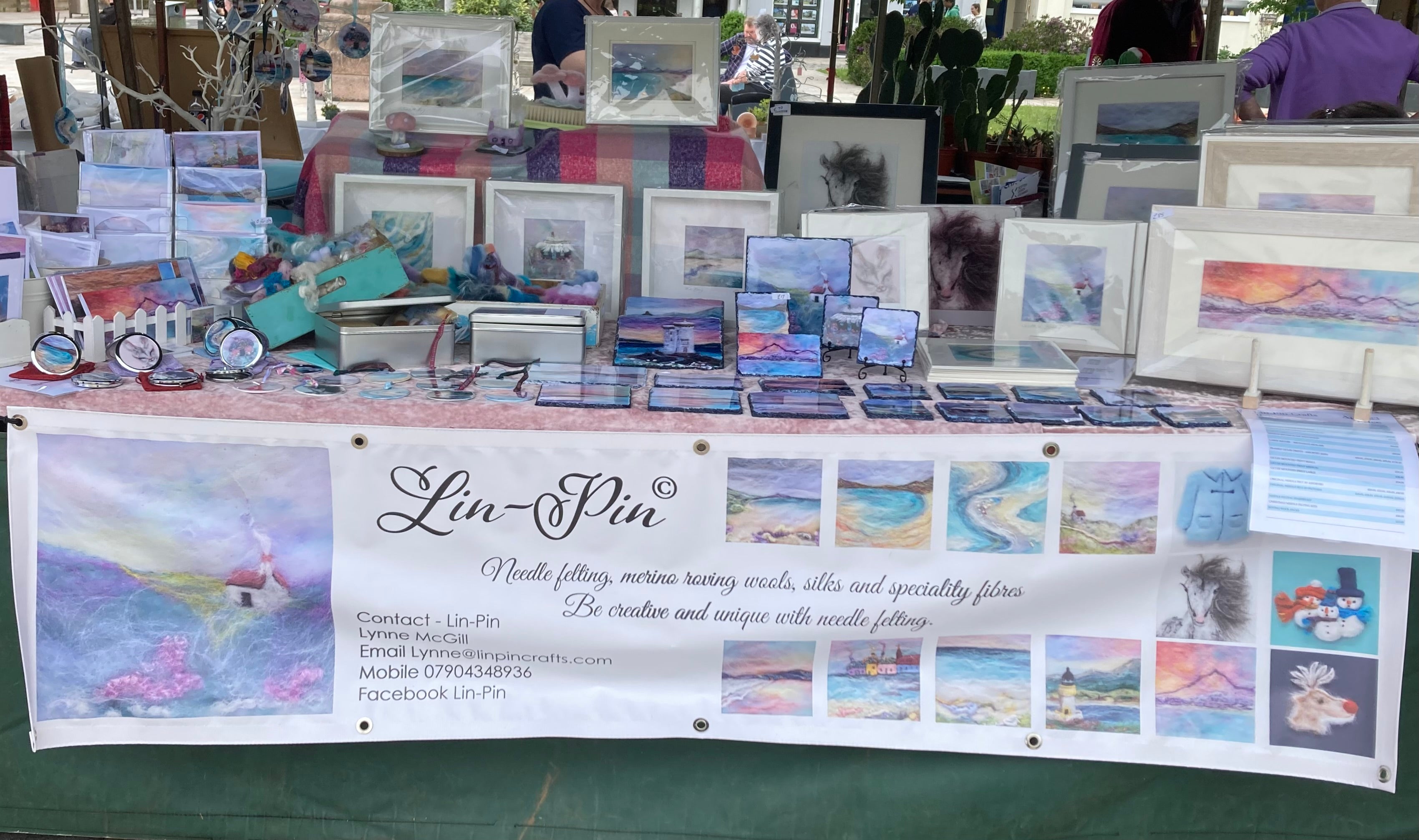 Lin-Pin creates her needle felting at home, attends a mixture of charity fundraising events and classes, stalls at Agricultural Shows, NTS fairs, Historic Scotland fairs, the Viking Festival and various Stall Hire Scotland markets.
